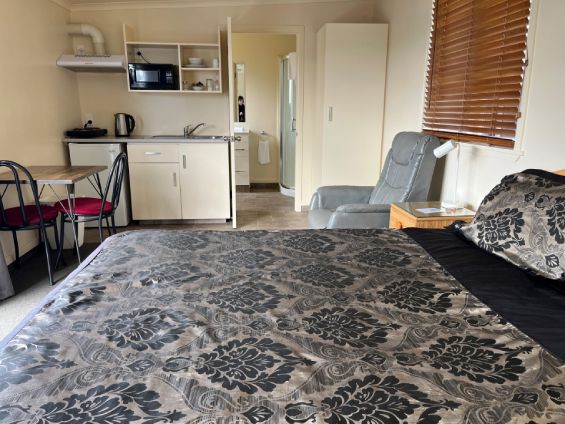 Ground level studio room with a queen-size bed. Air-conditioning and double glazed windows. Kitchenette with a microwave, 2 ring hot plate, electric fry pan. Complimentary tea and coffee facilities. Flatscreen TV with normal TV channels. Small balcony with country views.